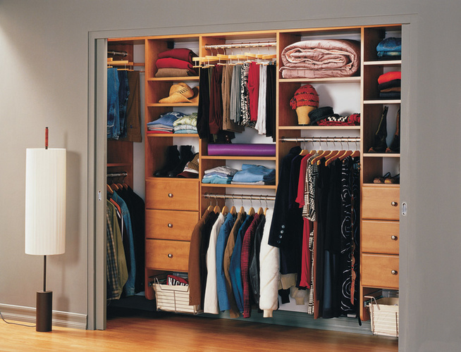 This closet is a good example of using space efficiently...by having the double hung areas, it allows you to have more clothes in a small space instead of one long bar along a closet.